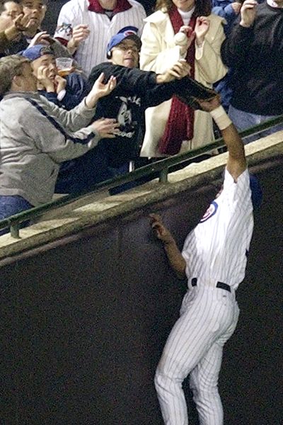 Starter Mark Prior was cruising until that fateful inning. With one out and a runner on second base, Marlins batter Luis Castillo hit a foul ball down the left field line. Left fielder Moises Alou got under it as the ball came down right along the left field wall. But as no one watching that day will forget, Cubs fan Steve Bartman reached up and touched the ball just as Alou was seemingly going to catch it.